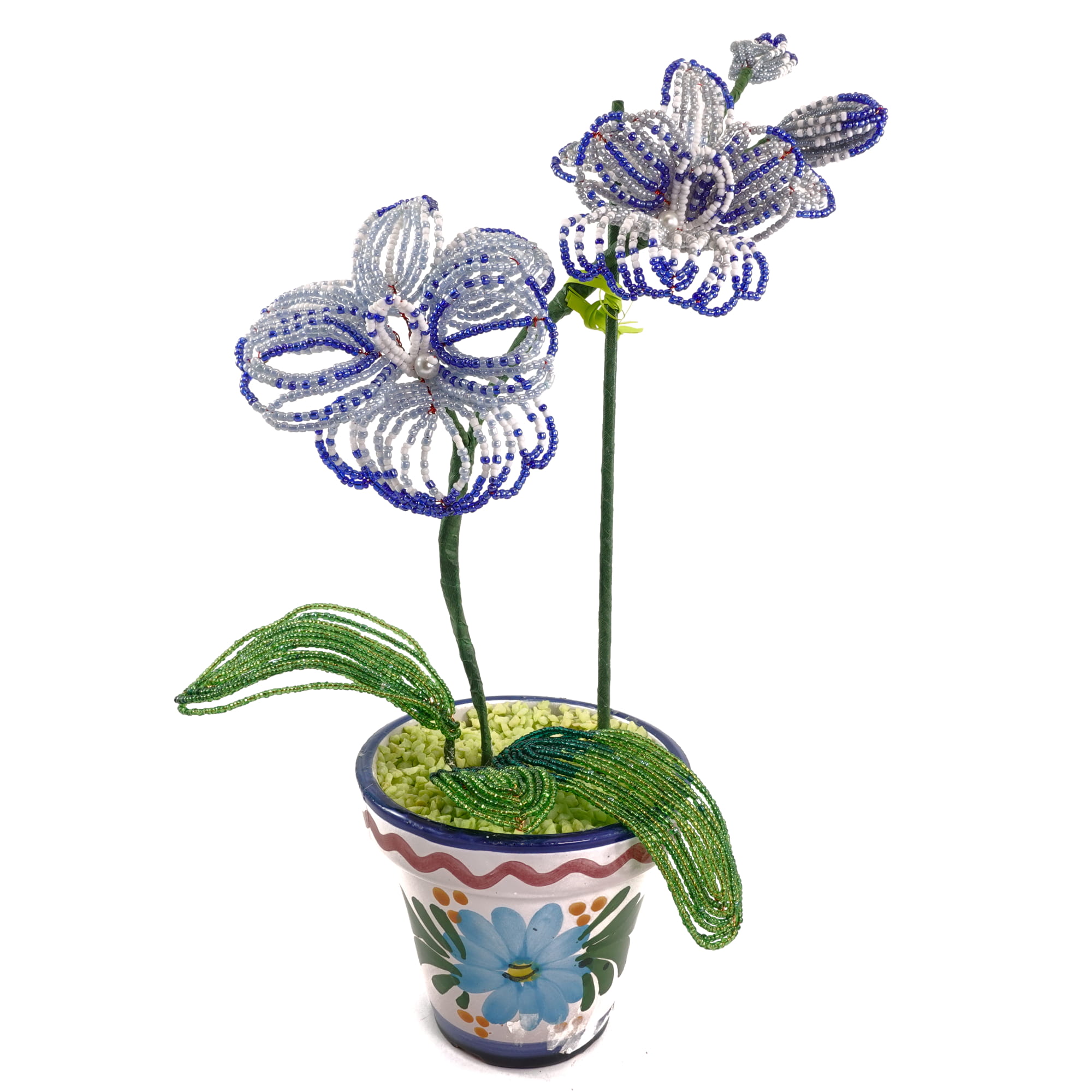 Conjunto de ramas de orquídeas hechas artesanalmente en abalorio, con maceta, elaborados con alambre de cobre de excelente calidad, de 25 cms de altura, con un peso de 1 kilo, hecho en Granada, España.