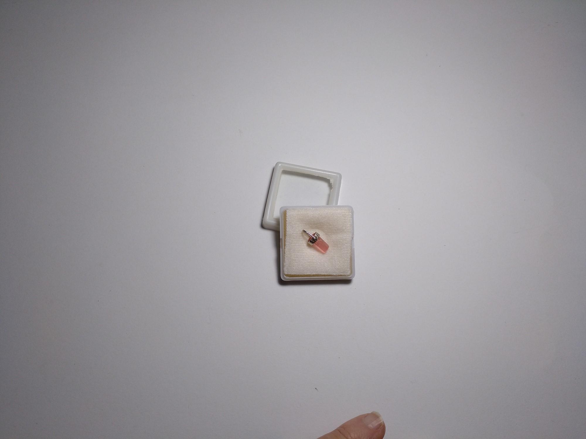 Mini pendant in gem-quality rhodochrosite mineral, Ortiz, 2 cm long, set in 925 silver, without chain, delivered in a square methacrylate box with a transparent lid. «A TRUE ARTISAN JEWELRY, HANDMADE, UNIQUE, AND ORIGINAL.