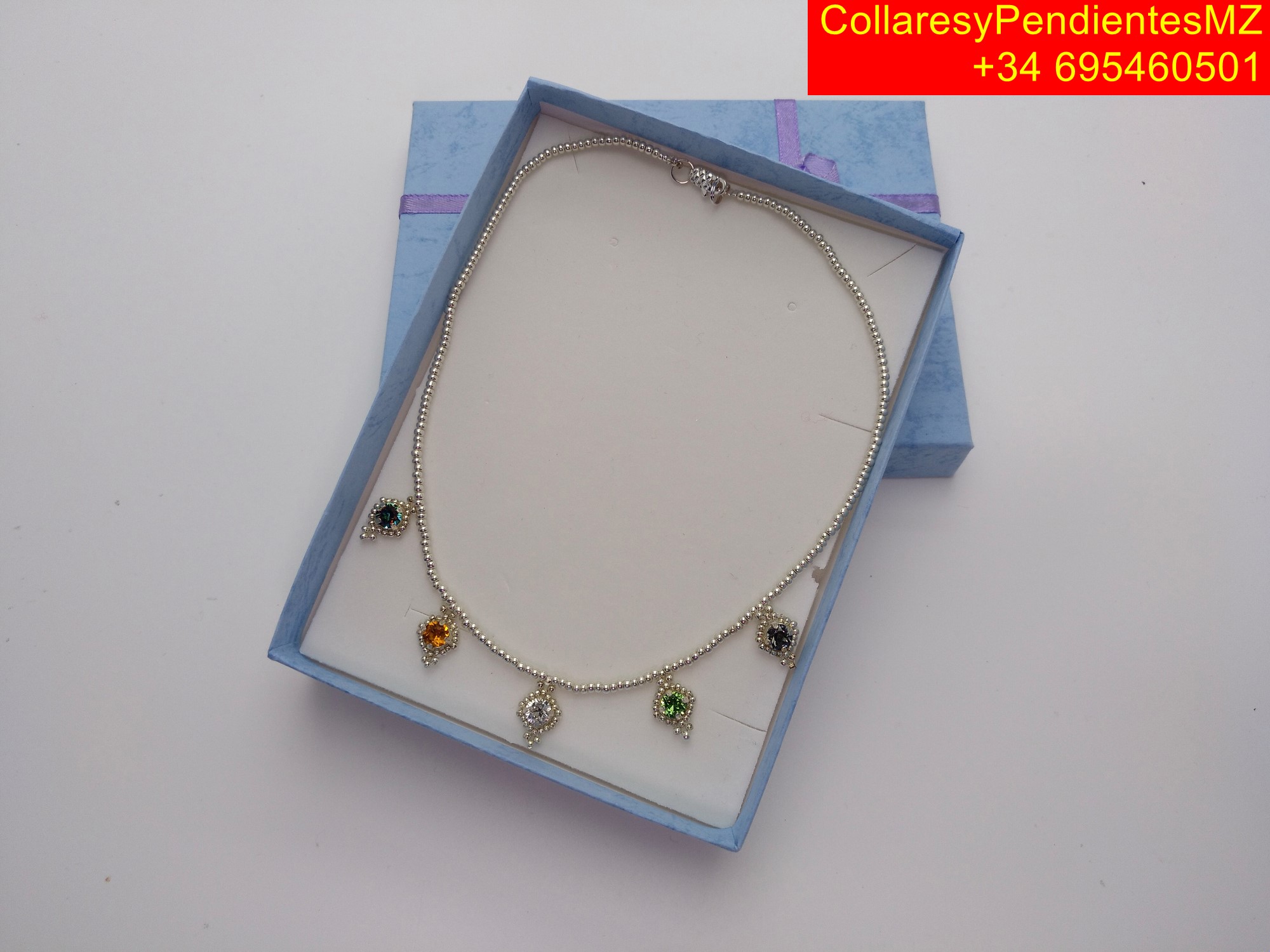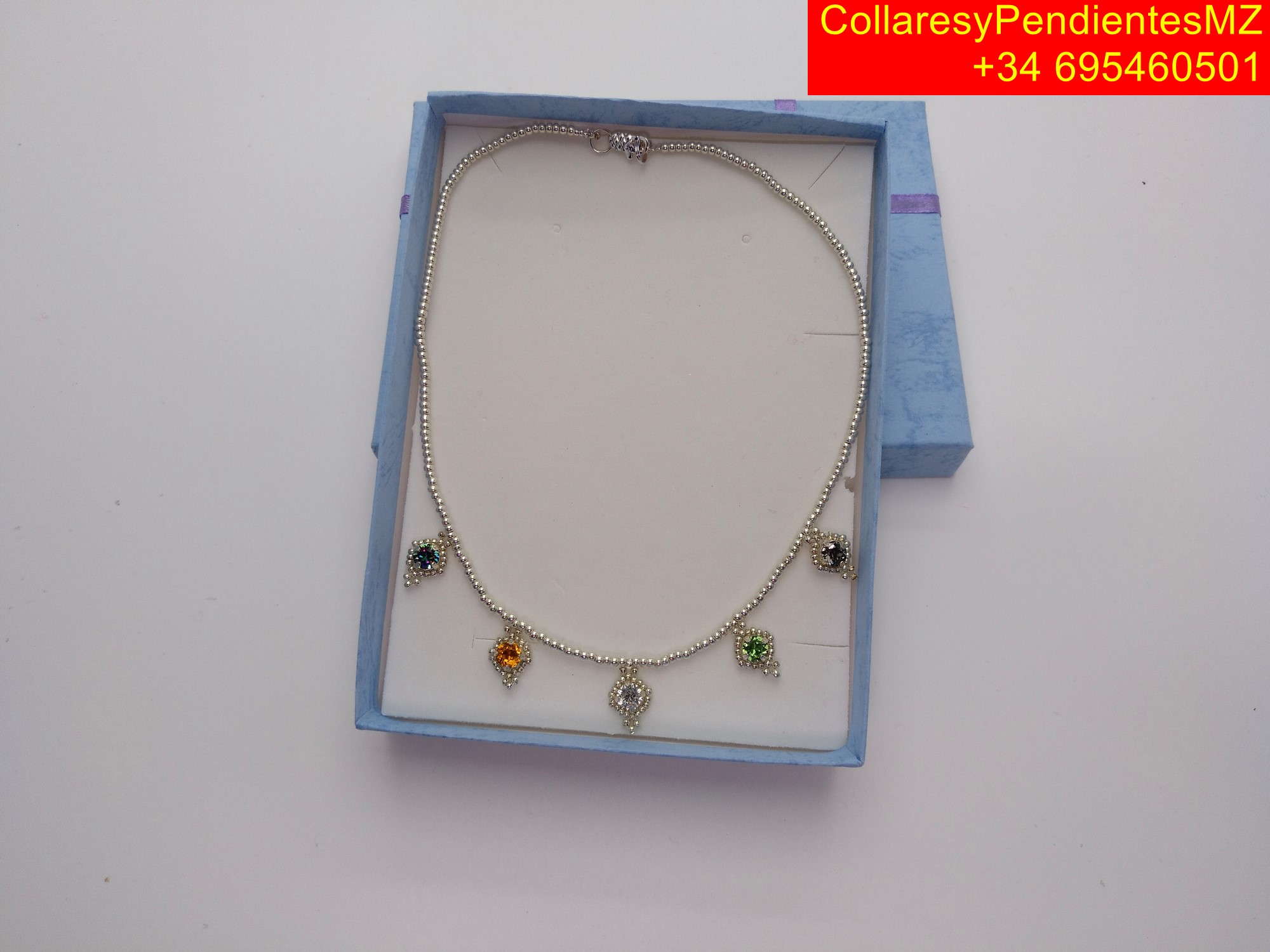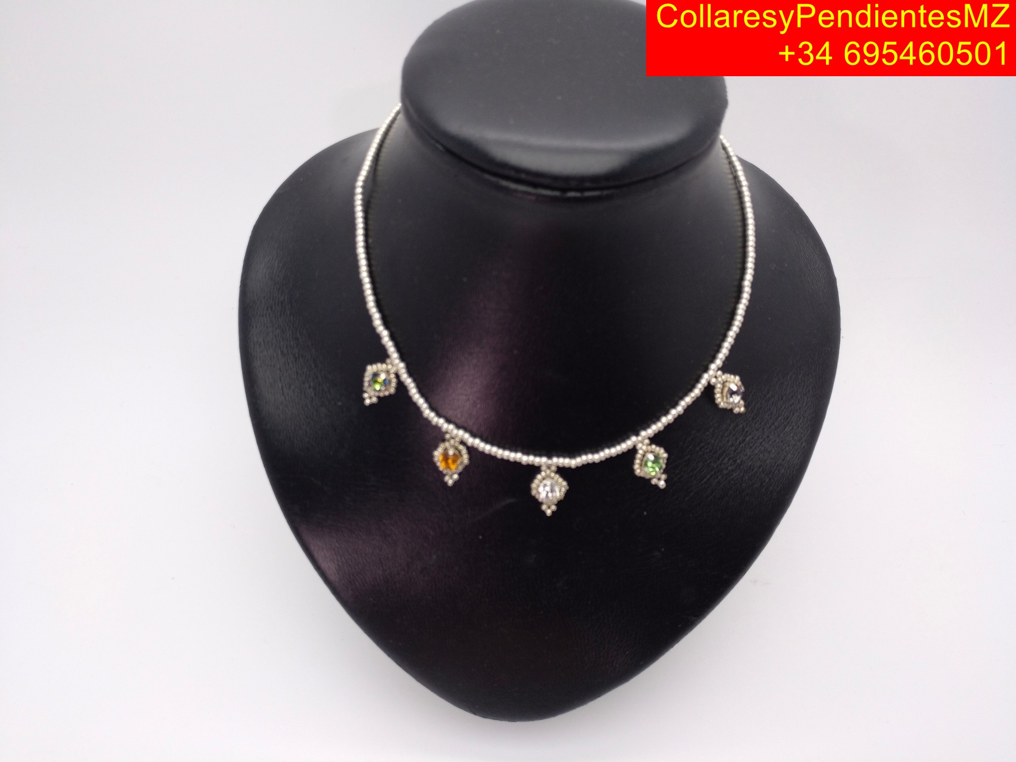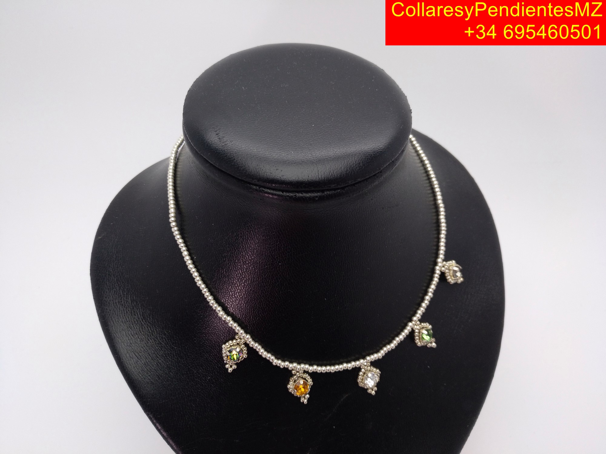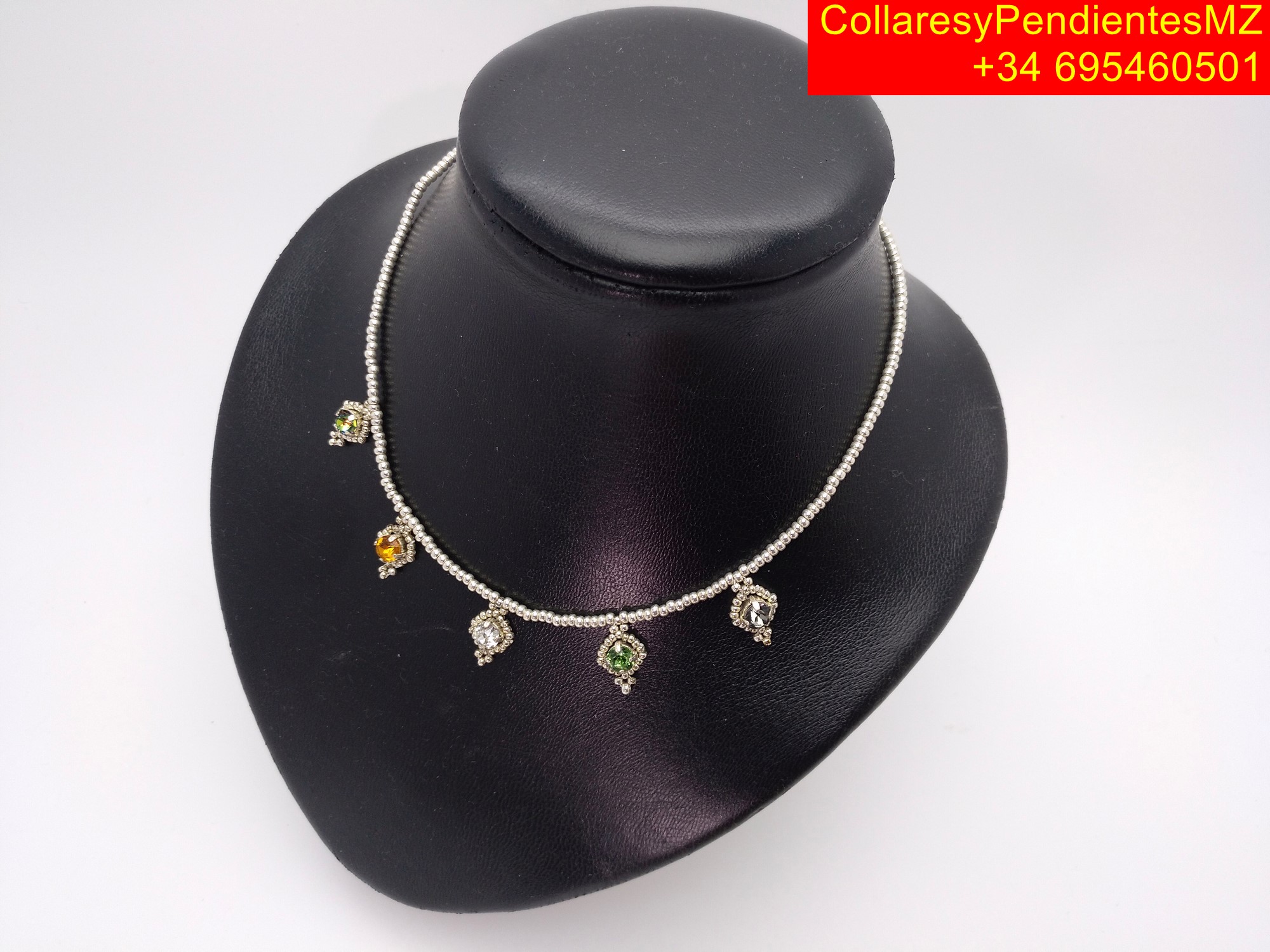 Collar con cabujónes de vidrio matizado en plata de ley hecho a mano para mujer. «Elegante, brillante y duradero»