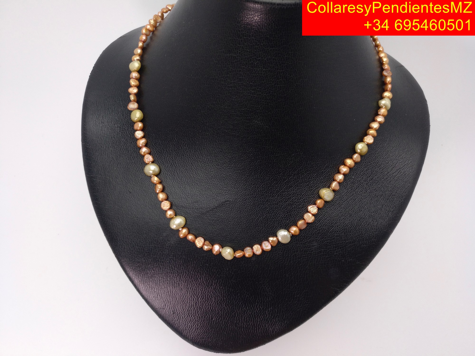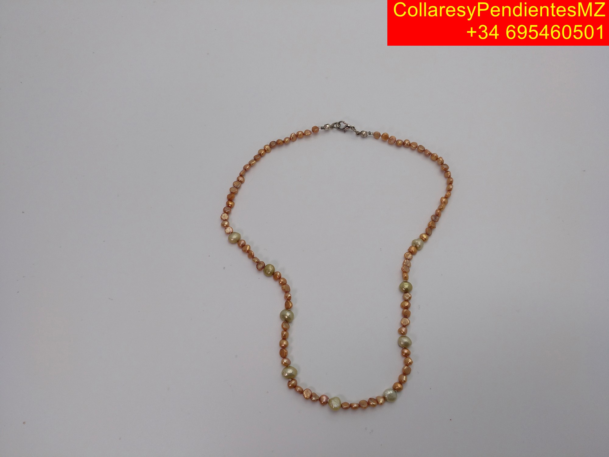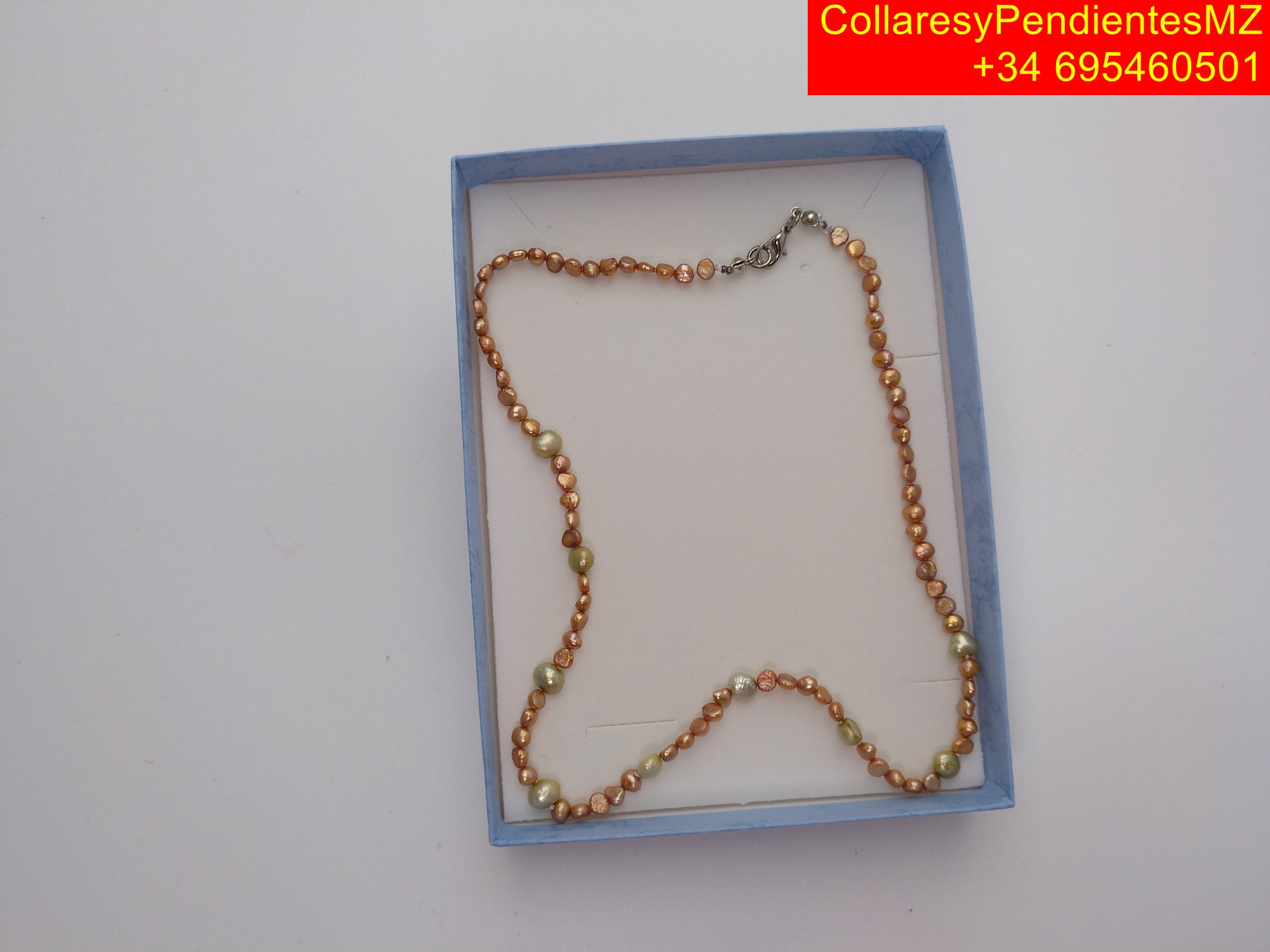 Cuidamos lo artesanal, pero con durabilidad y confort para uso diario, asi lo este collar hecho a mano, con perlas de agua dulce, de 50 cms de longitud, en color ocre y color pistacho, con cierre mosqueton. Se envia en caja de carton con tapa de joyeria, para su presentacion y cuidado, en la medida de 16x12x3 cms. con un peso de 60 gramos.