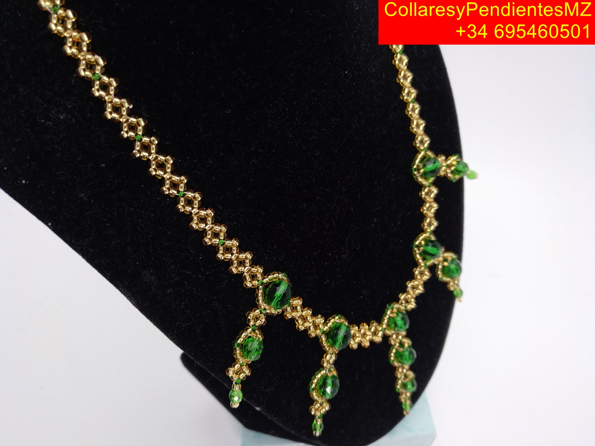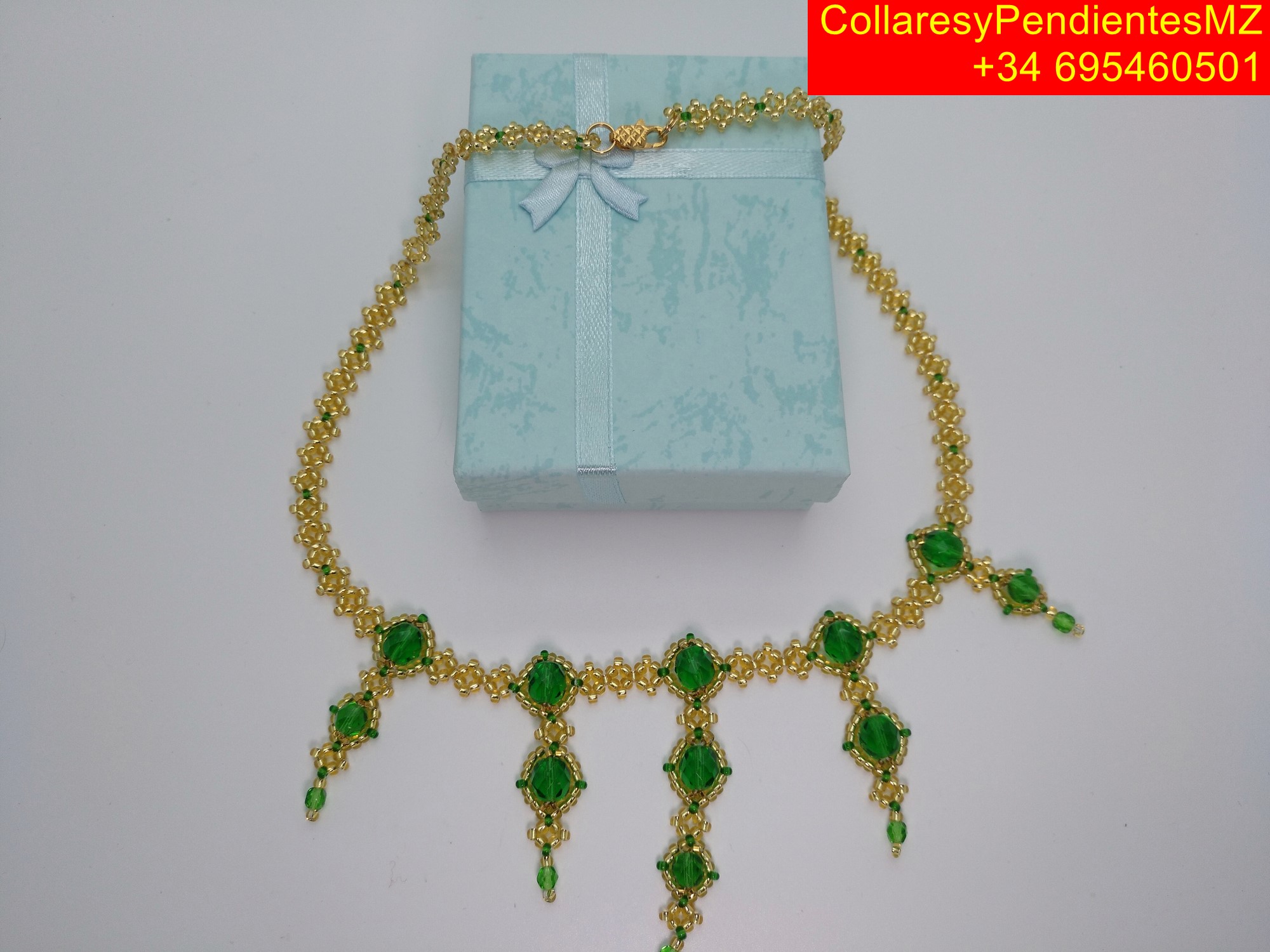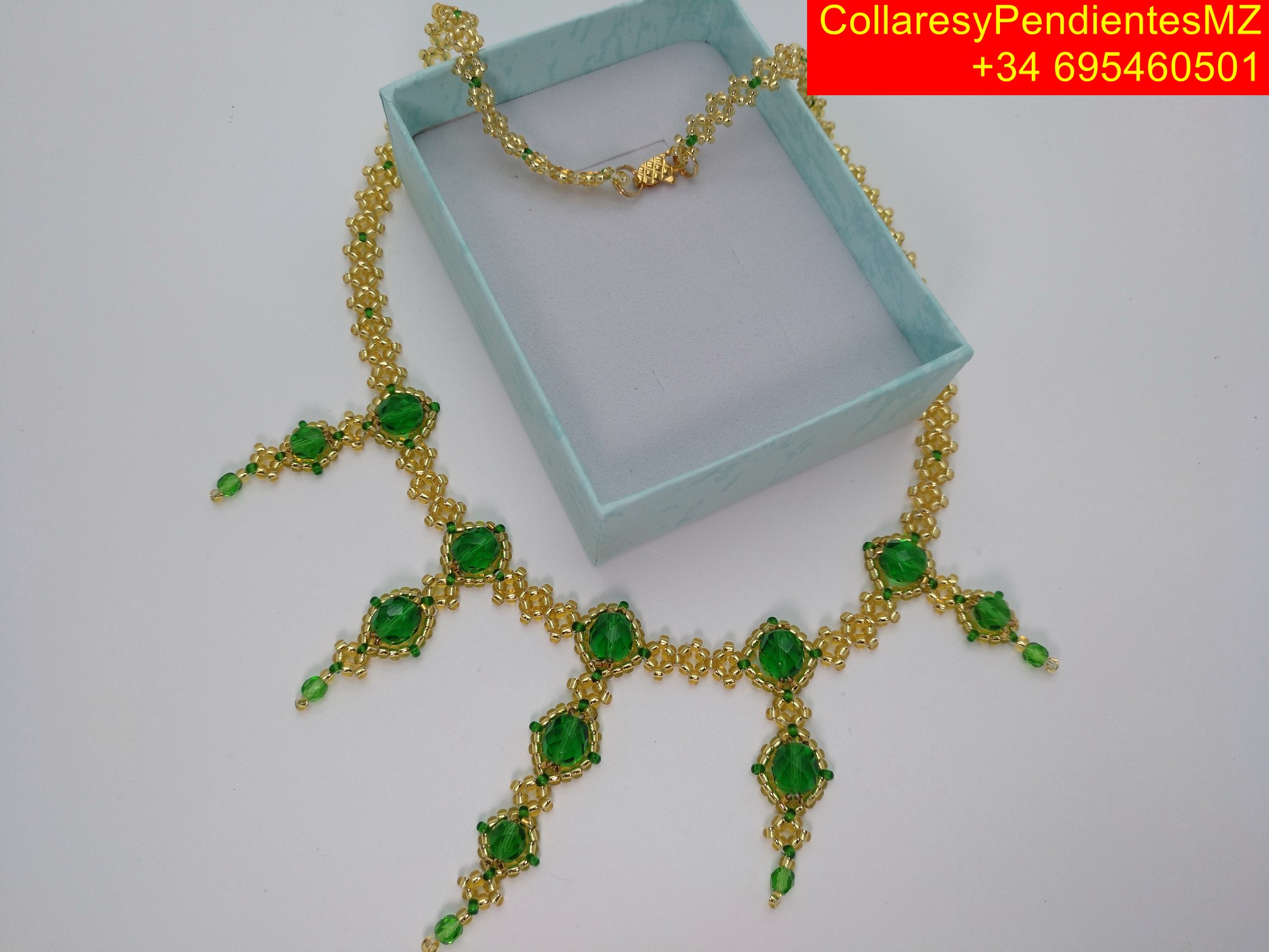 En CollaresyPendientesMZ realizamos Joyas Artesanales Unico Diseño, para Resaltar Tu Belleza, «Descubriendo la Elegancia en sus piezas, y la tendencia de Moda que No Puedes Perderte» Asi lo es este Collar elaborado con Facetadas de Bohemia en Color Greem, en tres tamaños 8, 6, y 4 mms., colocando Rocalla Preciosa Ornella en color dorado y verde, con cierre cuadriculado, dorado, enviandose en caja de joyeria, de carton con tapa de 16x12x3 cms, con un peso total de 50 gramos, «Es un regalo significativo hecho a mano para momentos especiales»