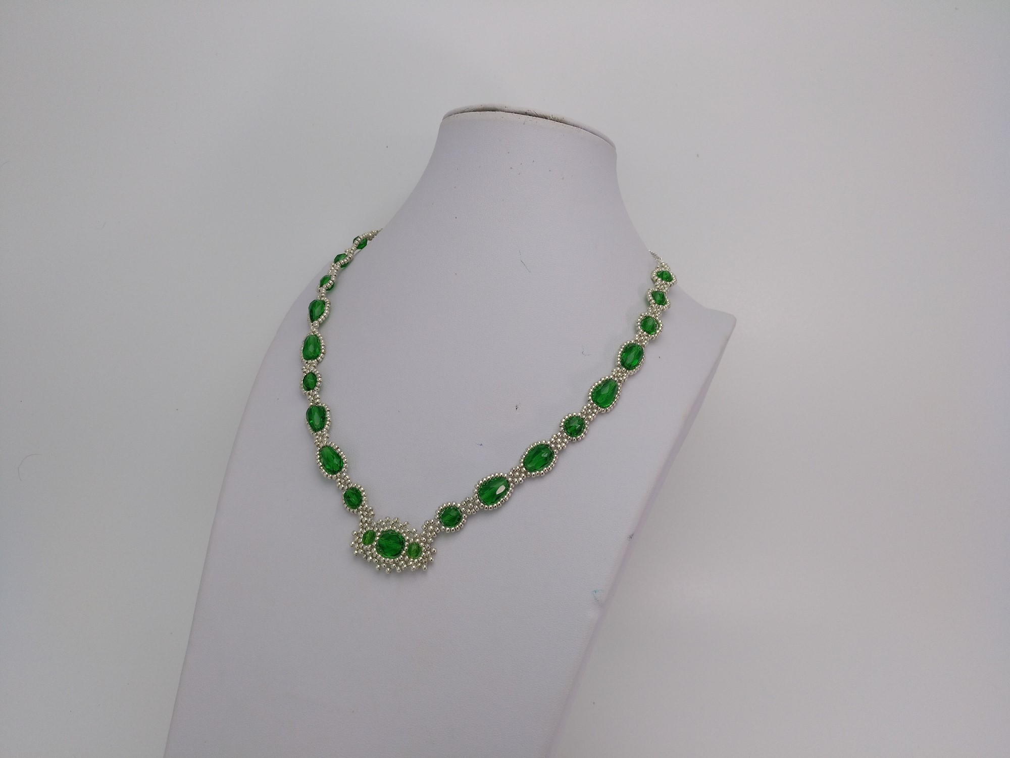Women’s necklace, handmade, in faceted spheres and pears from Bohemia, with a length of 50 cms, extension of 10 cms. Faceted pears from Bohemia from the Czech Republic, in Creeem color, with faceted spheres of three sizes, from Bohemia, Creem color, silver chain, with seed beads and finished with matching silver carabiner. where its craftswoman uses her ingenuity and wisdom, demonstrating it on the YouTube channel of Necklaces and earrings mz, in which she shows her techniques, tools and products of the best quality, purchased in the square. UNIQUE AND ORIGINAL DESIGN, delivered in a jewelry box, other similar products, we see them on the website www.mineralesenventa.com. This necklace is also often called LONG OR MATINE.
