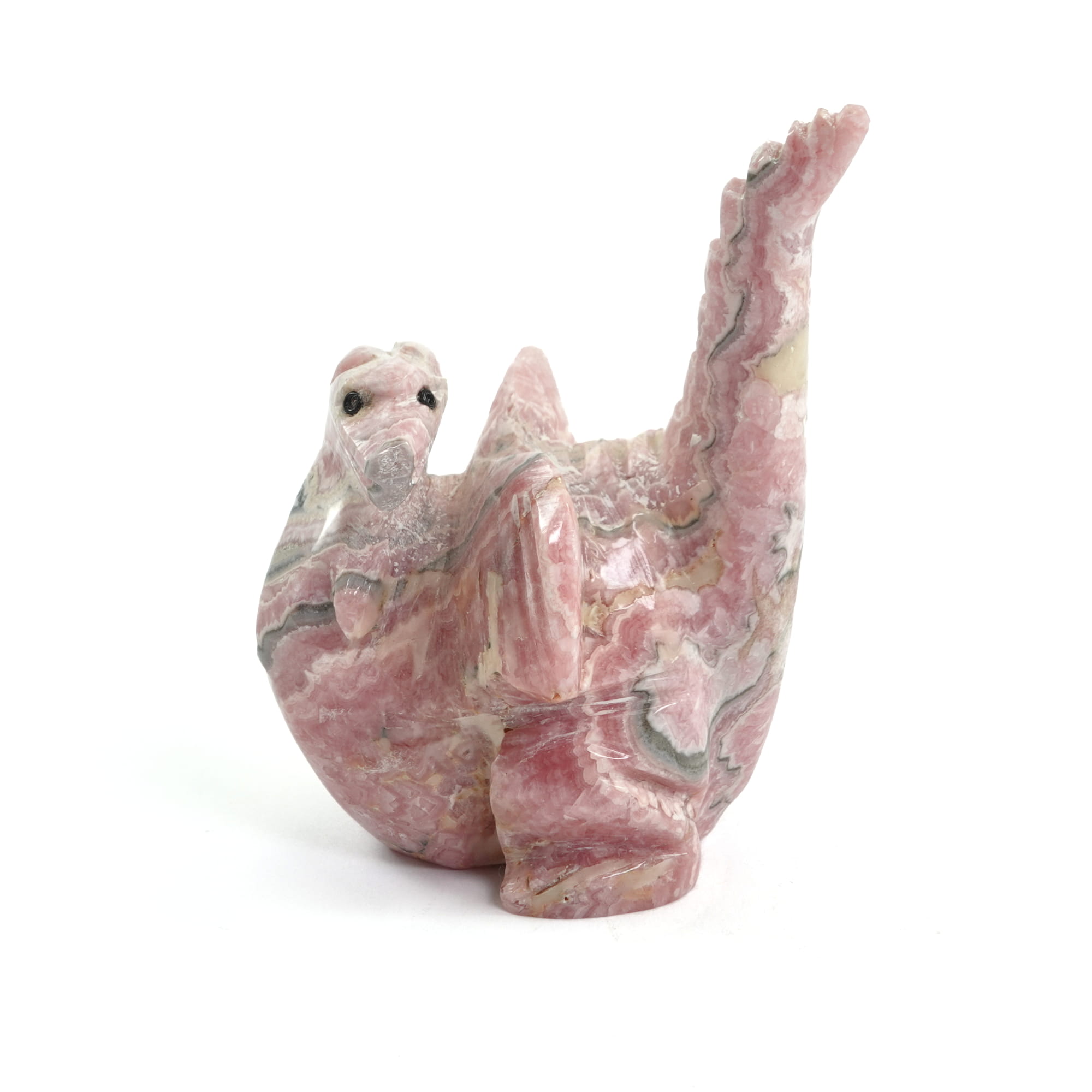 Flamante artesania, de un tallado de un dragón en mineral rodocrosita, o rosa del inca, material en bruto de procedencia de Capillita, en la provincia de Catamarca, Argentina, de las siguientes dimensiones 8 x 8 x 7 cms de ancho, con un peso de 180 gramos, y elaborado en Granada, España.