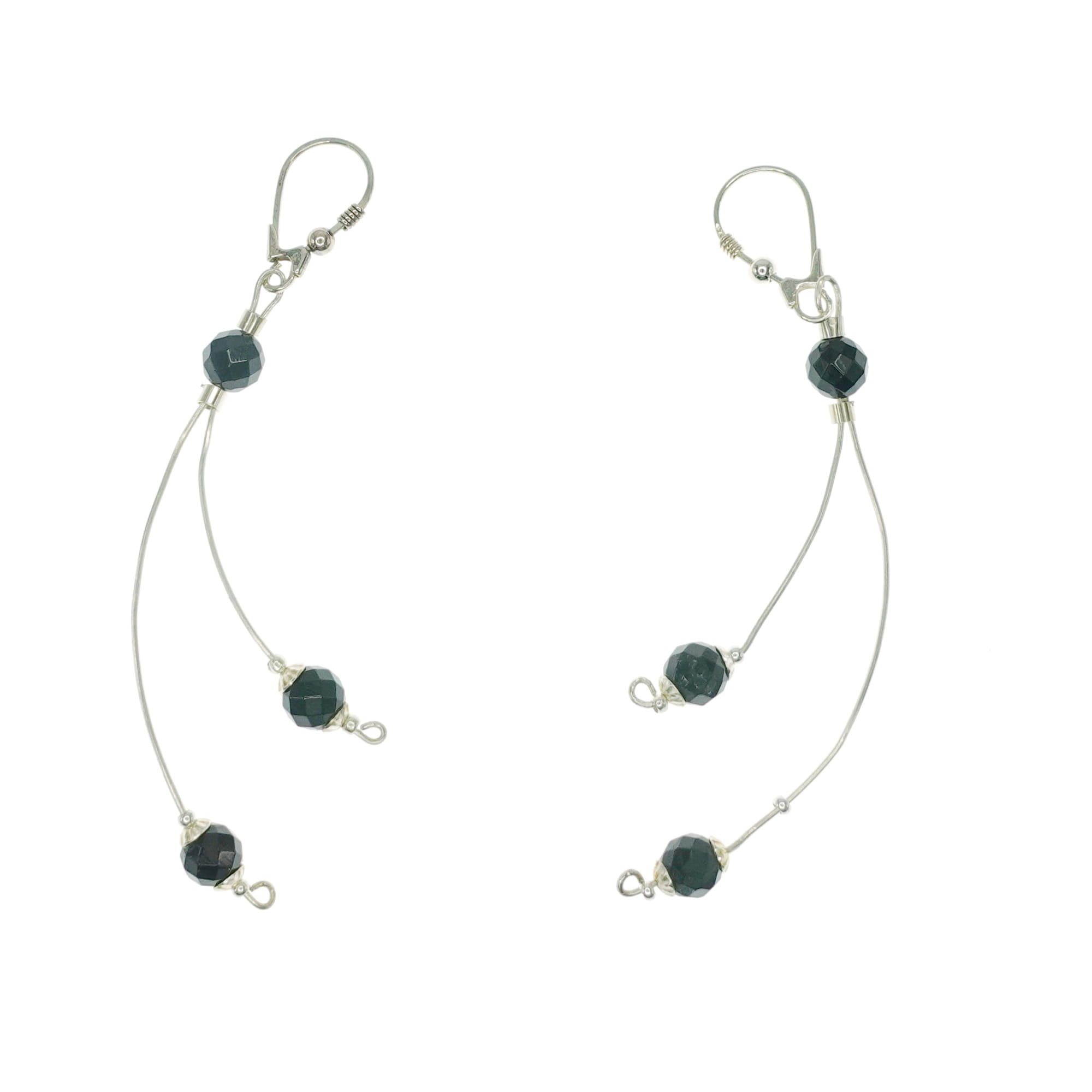Women’s 925 sterling silver earrings with faceted black agate, handcrafted in silver, with faceted black agate spheres and silver wire, made in the province of Granada, Spain.