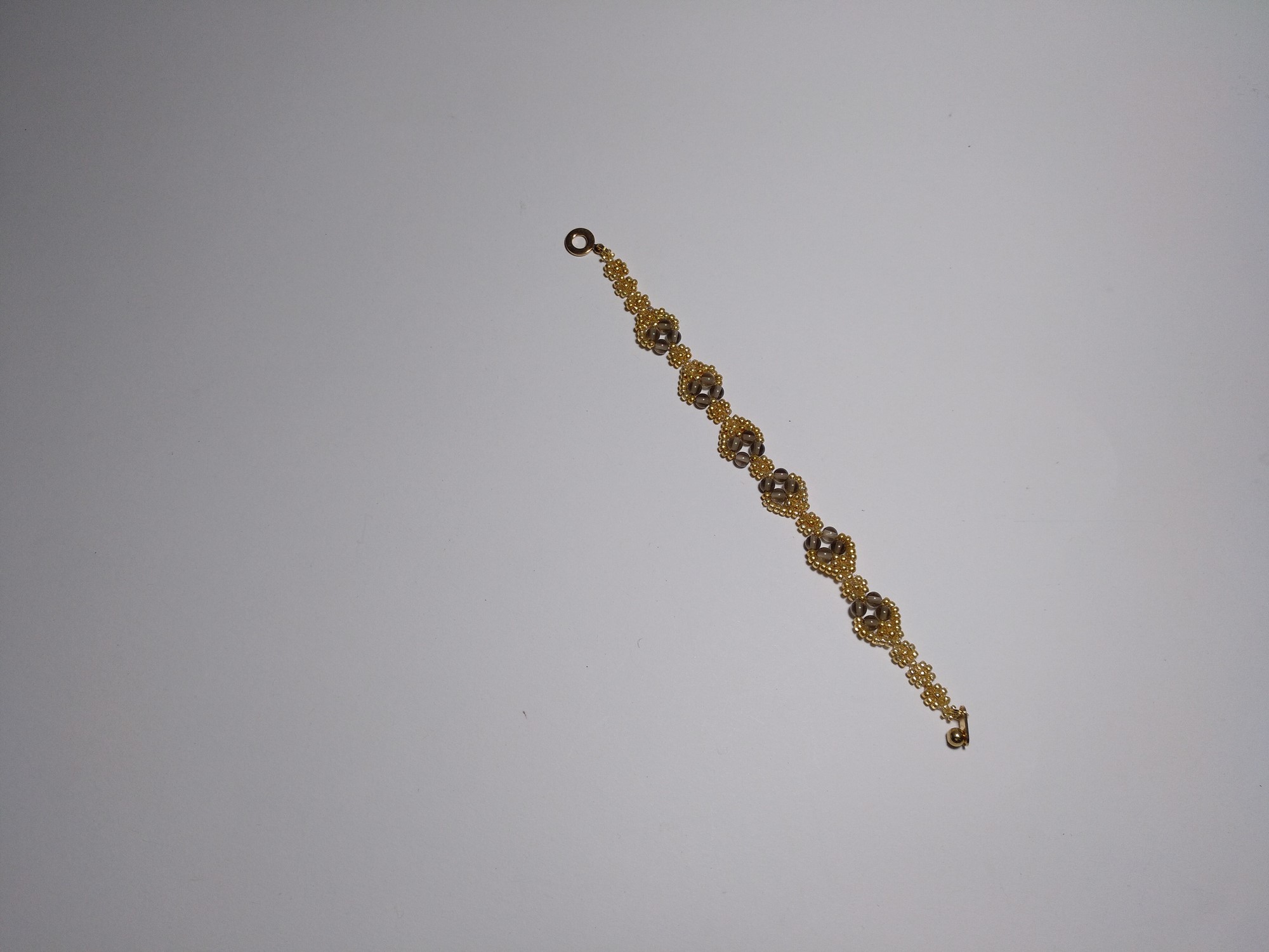 Esferas de cuarzo ahumado, rocalia, Miyuki doradas, y con cierre a presion.